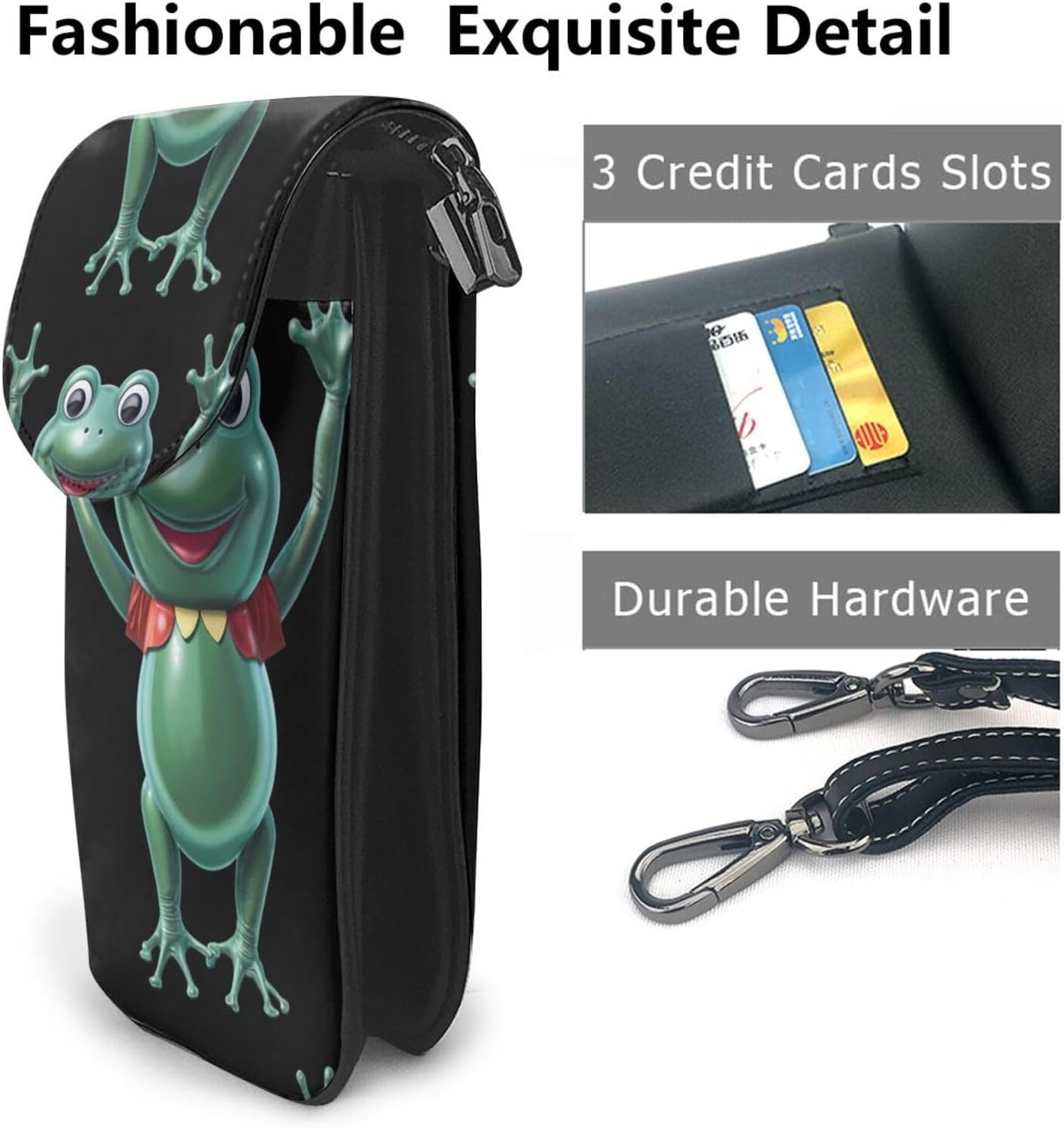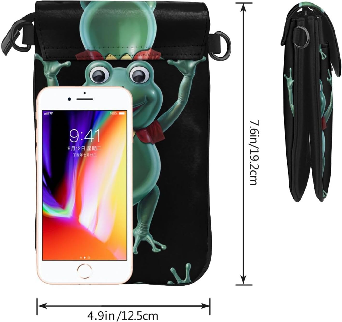 The MSRHIUEF Frog shaped hydrogen balloon Printed Small Cell Phone Purse 7.6x4.9in stands out as a fashionable, practical, and multifunctional accessory for women. Made from high-quality soft synthetic microfiber leather, this purse is not only durable and waterproof but also features a soft lining material for added comfort. Its design includes a magnetic buckle and gold hardware, adding a touch of elegance, while the detachable shoulder strap offers versatility in carrying options. The special flip closure ensures security, making it suitable for various occasions such as daily use, travel, or outdoor activities like walking, camping, and shopping. Despite its compact dimensions, the purse is surprisingly spacious, capable of holding essentials like cash, cards, keys, some makeup, and smartphones up to 5.5 inches, thanks to its magnetic snap button phone pocket. Additionally, it boasts one front pocket