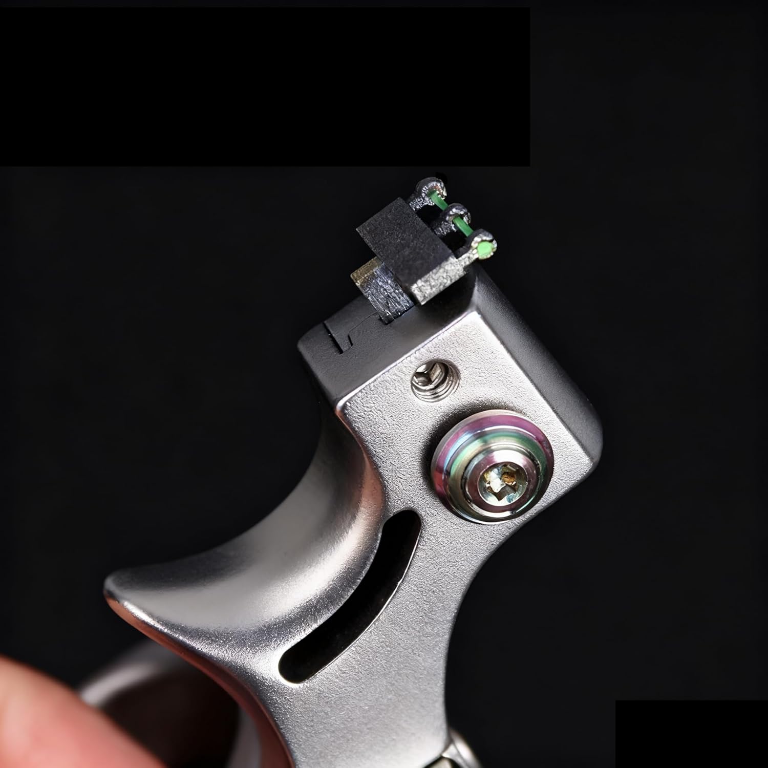 This is definitely a unique slingshot. It is stable in structure, durable, comfortable to grasp and not easy to slip from your hand. The professional sight allows you to shoot quickly and accurately. It can match rubber bands with different thicknesses. Reasonable rubber bands and ammunition can make its power amazing. He must be a good helper for your outdoor hunting.